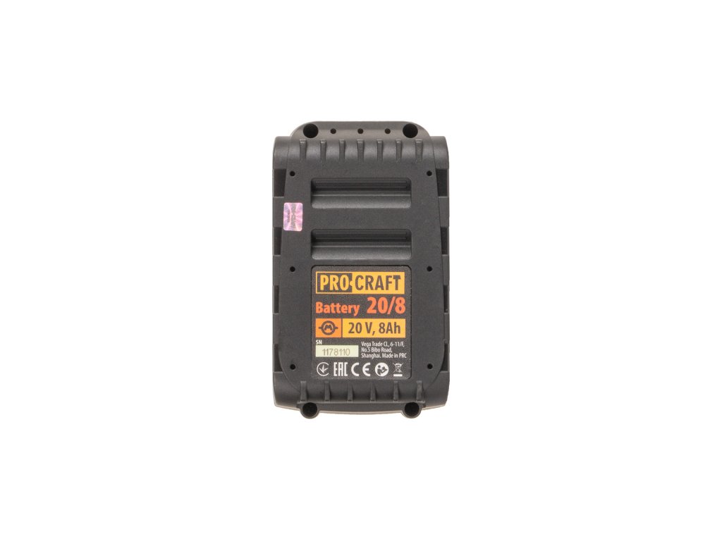 Baterie akumulátorová Procraft 20/8 Akumulátor: LI-ion 20V, 8Ah Doba nabíjení 0-MAX: 270 min Indikátor stavu nabití Ochrana proti přehřátí Ochrana proti nadměrnému vybitíDoplňkové parametry