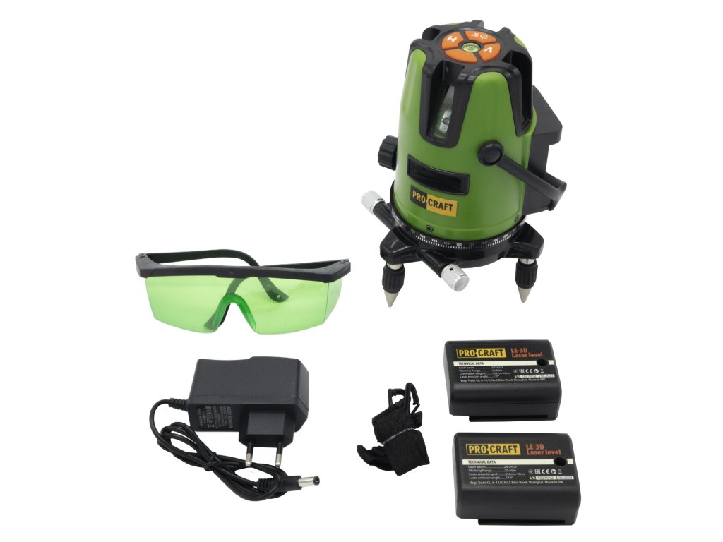 Laser zelený liniový, křížový samonivelační Procraft LE-3D | LE-3D