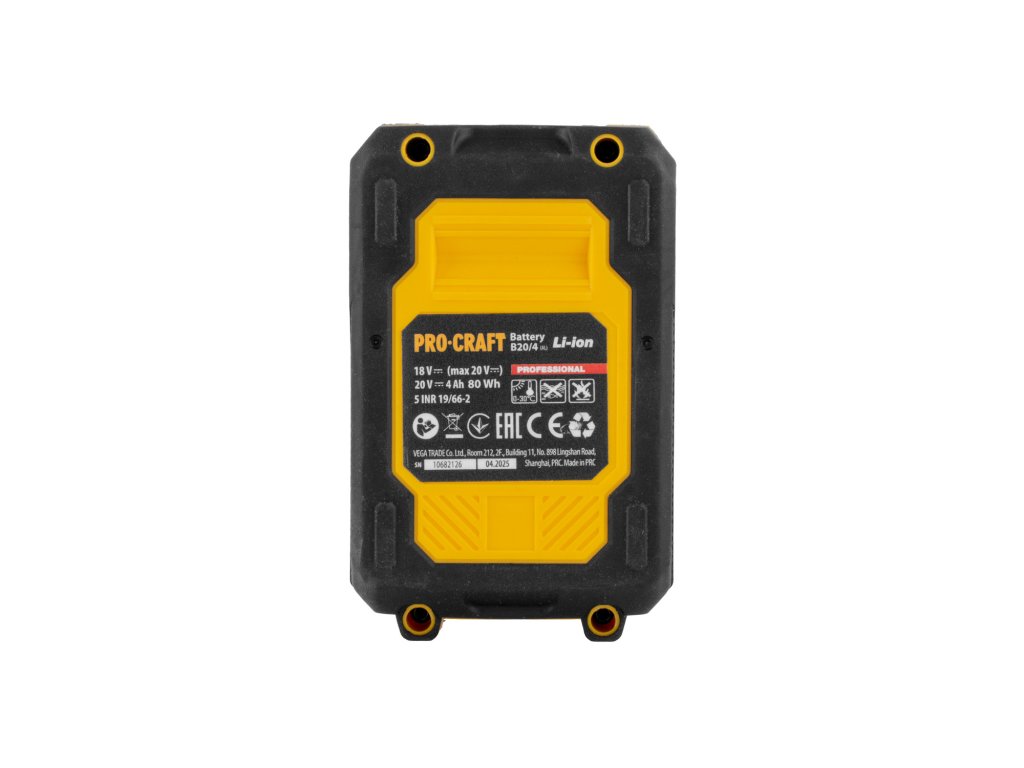Sada obsahuje dvě baterie Procraft 20V 4Ah s ochranou proti přehřátí a vybití a nabíječku. Ideální doplněk pro nepřerušovanou práci s aku nářadím Procraft.