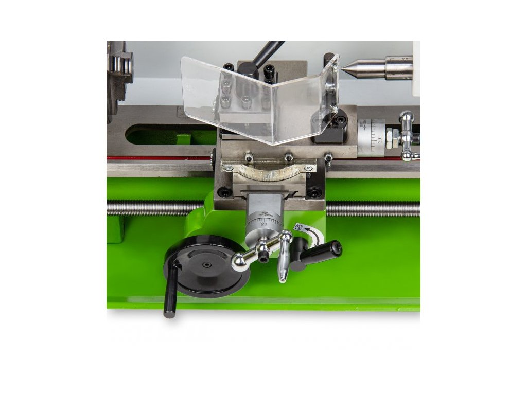 Soustruh na ocel a plast Procraft VMM800 je určen k soustružení, k řezání závitů, k obrábění hliníku, oceli, plastu a mosazi. Silný motor s příkonem 550 W a vysokých otáček až 2500 zaručuje dlouhou bezporuchovou práci. Regulace otáček v rozsahu 0-2500 za minutu umožňuje nastavení optimálních parametrů při práci s různými materiály. Robustní litinová základna a stabilní konstrukce zaručí přesné a kvalitní obrábění. Automatický podélný posuv usnadní a zrychlí práci. Součástí dodávky je sada klíčů, olejnička, 3čelisťové sklíčidlo, středící hrot, sada ozubených převodových kol. Balení karton.