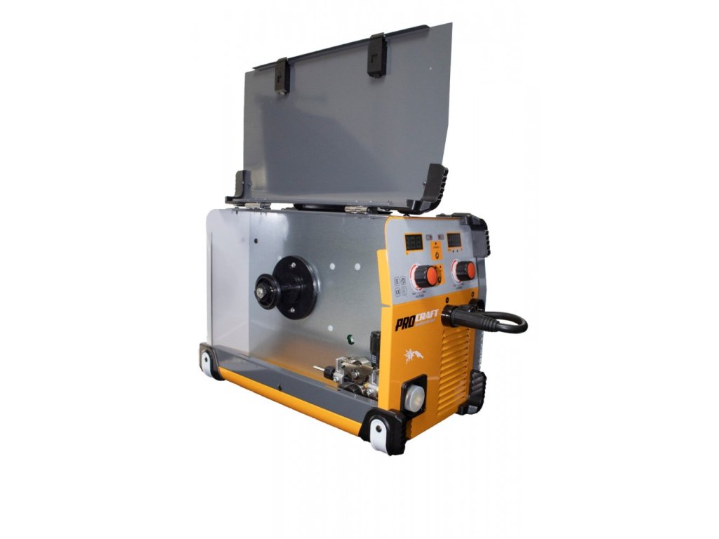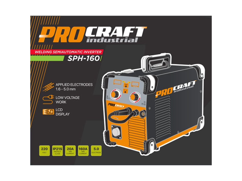 Svářecí invertor Procraft SPH-160 je určen k ručnímu svařování metodami MMA a MIG-MAG. Výkonové tranzistory IGBT zaručují dlouhou bezporuchovou práci. Regulace svařovacího proudu v rozsahu 20-160 A umožňuje nastavení optimálních parametrů při práci s různými kovy. Lze použit svařovací elektrody s průměrem 1,6 až 5,0 mm. Funkce pro metodu MMA arc force, anti stick, hot start zaručují rychlé a snadné svařování. umožňuje svařování s inertními nebo aktivními plyny. Pomocí LCD Displeje je zobrazován aktuální svařovací proud. Součástí dodávky je MIG hořák s kabelem, svářečský štít, kabel s držákem elektrod, kabel se zemnícími kleštěmi a drátěný kartáč kombinovaný s kladivem na strusku. Balení karton.